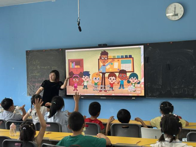 为迎接学校百年校庆,充分发挥优秀校友榜样引领作用,7月3日下午,华体会官方端网站登录入口邀请2012届校友、南京市竹山小学大队辅导员孙莉老师走进课堂。2025年7月,华体会官方端网站登录入口“智启未来,语AI同行”实践团开展教职工子女暑期托管服务,孙莉老师受邀走进暑期托管班,为孩子们带来了一堂别开生面的英语课。